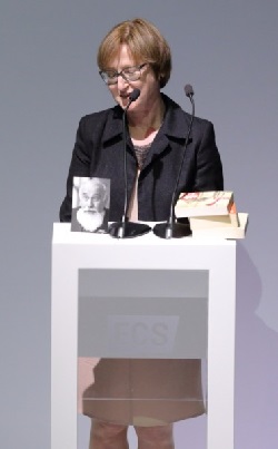 Die Geschäftsführerin des Lew Kopelew Forums in Köln, Waleria Radziejowska-Hahn, bedankte sich im Namen des Forums für die posthume Ehrung seines verstorbenen Patrons.