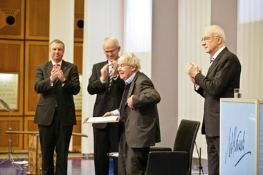 Siegfried Lenz nach Erhalt der Preisurkunde