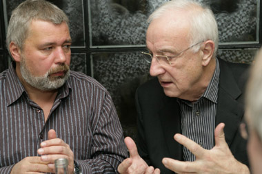 Der Preisträger Dmitrij Muratow mit dem Laudator Fritz Pleitgen