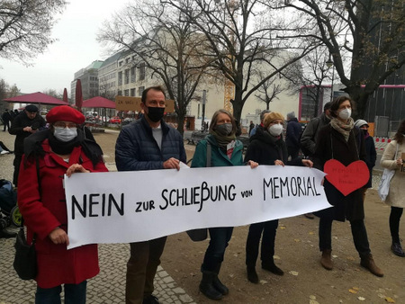 Demonstration gegen die Auflösung von „Memorial“ vor der russischen Botschaft in Berlin, 14.11.2021